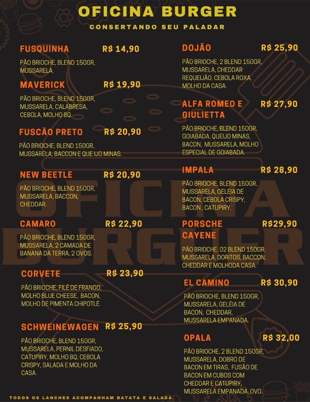 Fuscão PretoPão Brioche Blend 150gr Mussarela Bacon Queijo Minas Alface Tomate Batata Frita R$ 20,90 |